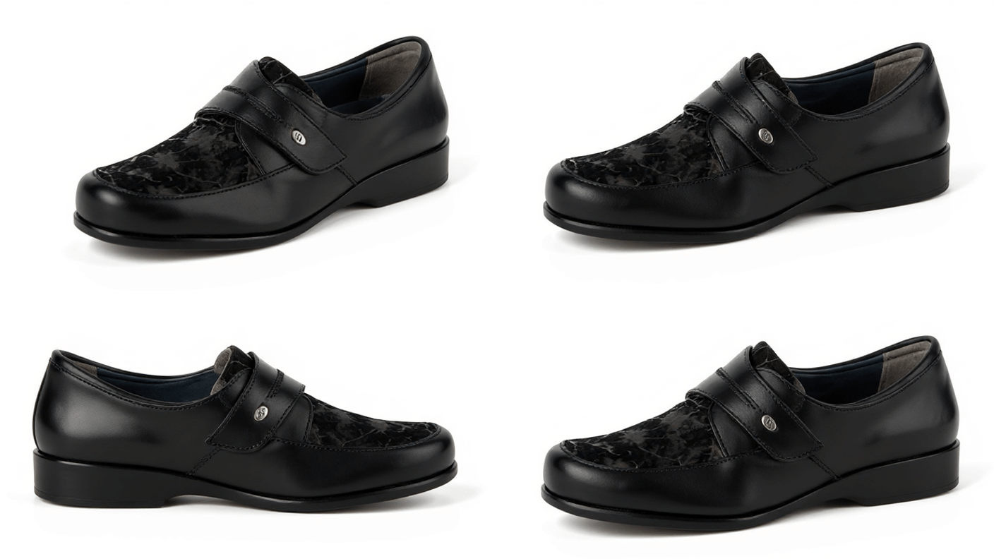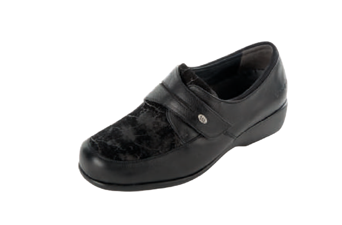 EN- Models made with natural stretch leather or stretch materials and no internal seams, which adapts to foot prominences (bunions, hammer toes…).