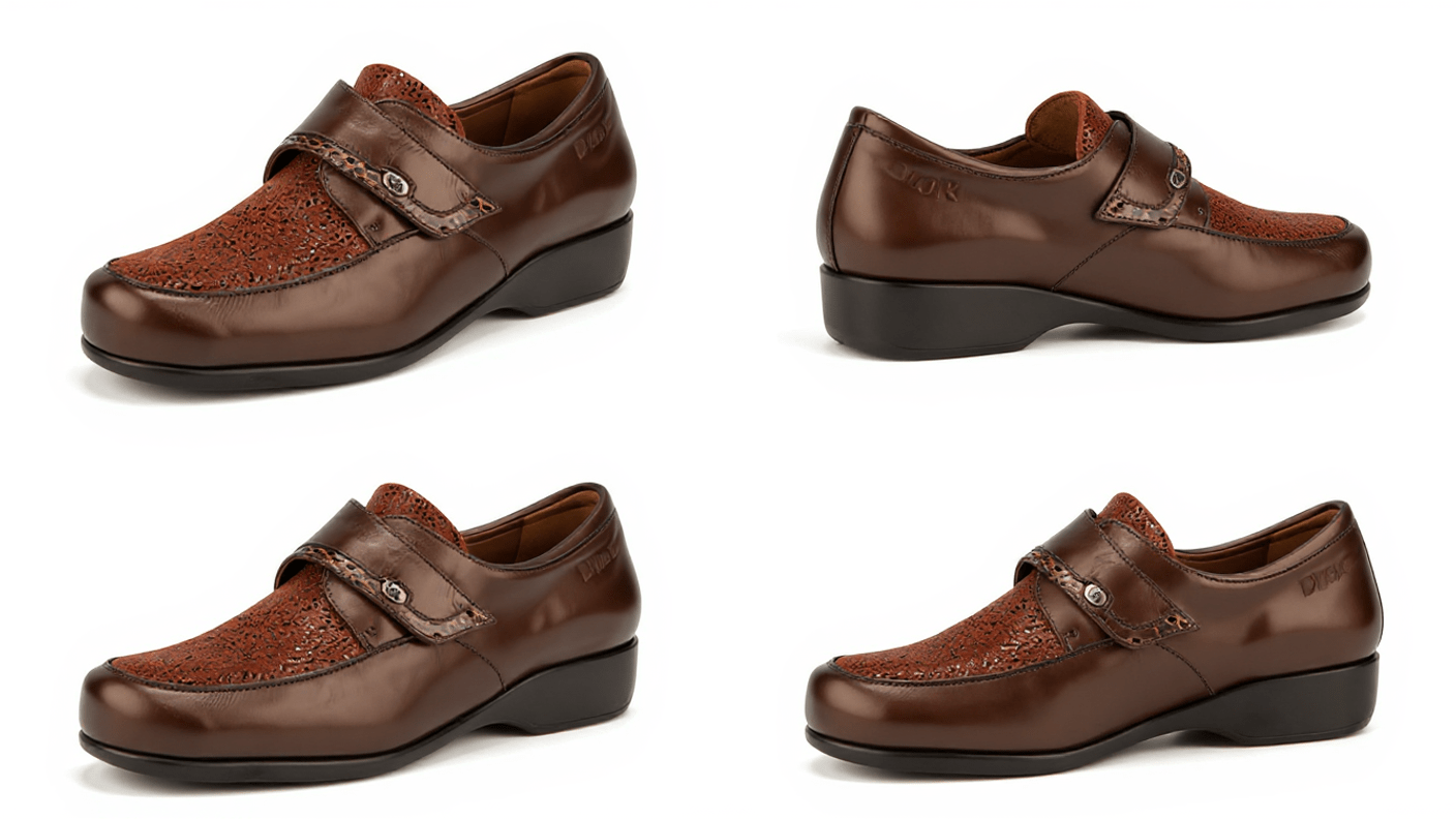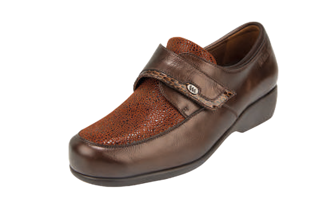 EN- Models made with natural stretch leather or stretch materials and no internal seams, which adapts to foot prominences (bunions, hammer toes…).