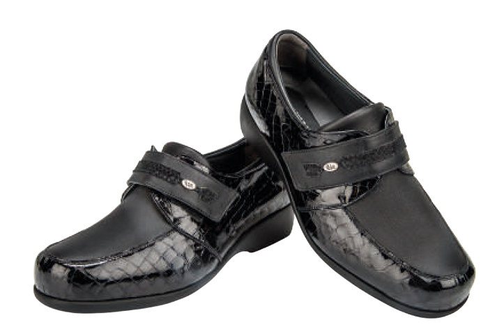 EN- Models made with natural stretch leather or stretch materials and no internal seams, which adapts to foot prominences (bunions, hammer toes…).